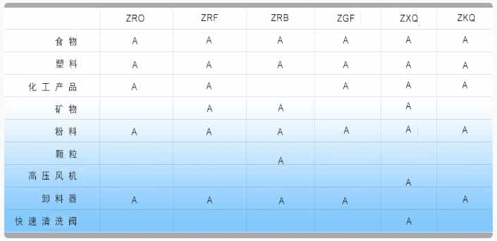 以下表格簡要的就不同的材料選取什么旋轉閥做了簡要的說明,僅供參考。